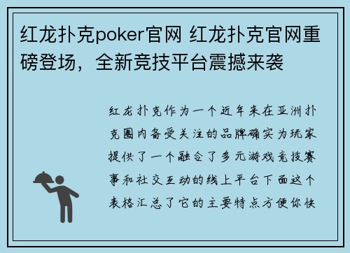 根据目前的搜索结果,关于红龙扑克新版安卓客户端的下载,最关键的一点是:你需要通过其官方网站来获取最新、最安全的安装包。 为了方便你理解,我将完整的下载和安装流程整理成了下面这个图表:HHpoker下载 ...