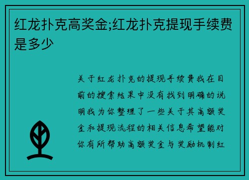 下面这个表格整理了2025年红龙扑克巡回赛(APT)几大主要分站的核心信息,帮你快速了解其规模和吸引力。 | 赛事分站 | 举办时间 | 举办地点 | 主赛保底奖励 | 主要亮点 | | :-- | :-- | : | : | : | | APT台北站 | 2025年4月25日 5月4日 | Red...
